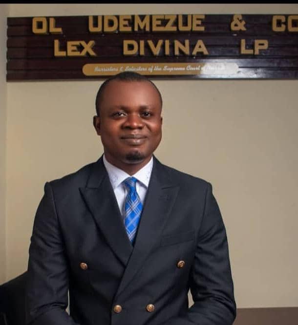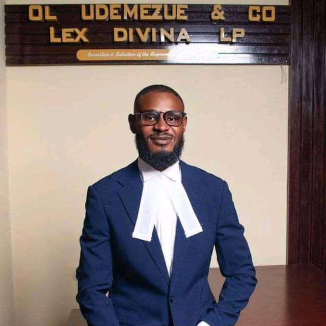 Oluchukwu Udemezue Esq., is the Head of Practice and Lead Counsel at O. L. Udemezue & Co (Lex Divina LP). He was called to Bar in 2010. He also obtained an LLM in the Department of International Law & Jurisprudence of Nnamdi Azikiwe University. He is a doctoral student at the same university.